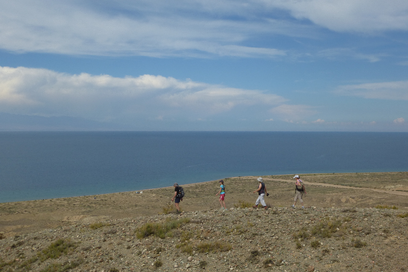Le lac Issyk Kul, la perle de la Kirghizie. Le second plus grand lac d’altitude (1 600 mètres d’altitude) après le lac Titicaca. Balade le long du lac, canyons, baignades, rencontre avec Aiton aiglier de renom.