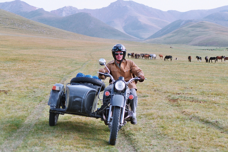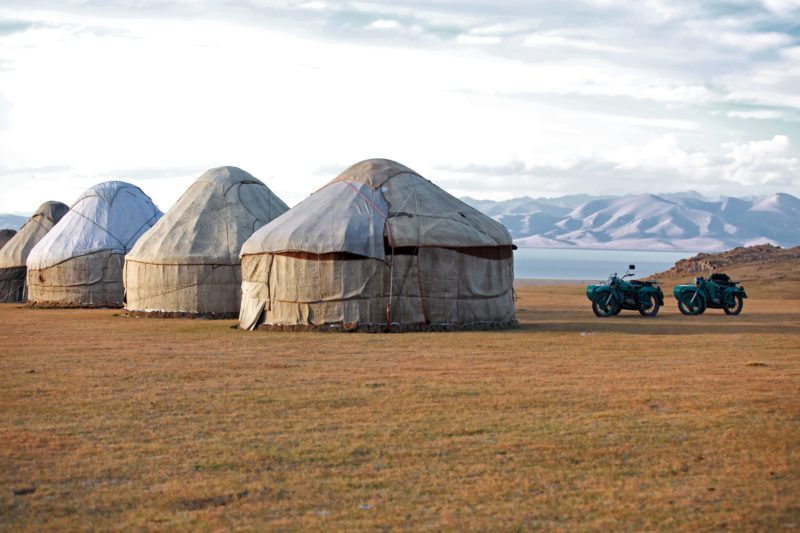 Une grosse journée pour rejoindre le lac Son Koul, un des plus beaux sites de Kirghizie. Les motos peinent, il nous faut franchir un co à plus de 3 400 mètres. Mais l’arrivée sur le lac est superbe. Les camps de yourtes parsèment ce décor de carte postale. Nuit sous yourte