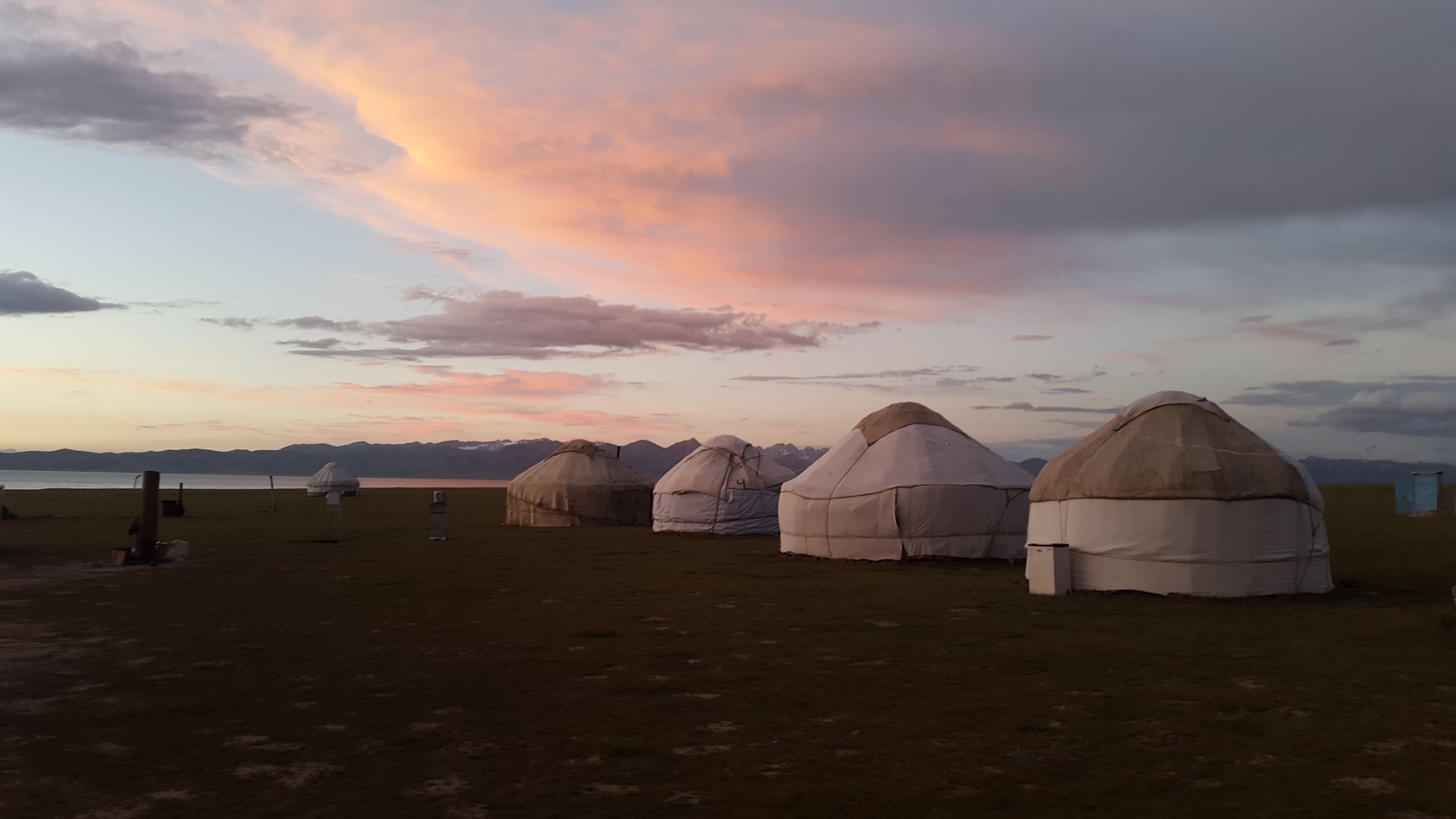 1/2 journée pour atteindre le lac Issyk Koul. Baignades dans les eaux du lac Issyk Koul, relaxation . Nuit sous tente au bord du lac et sous la Voie lactée !