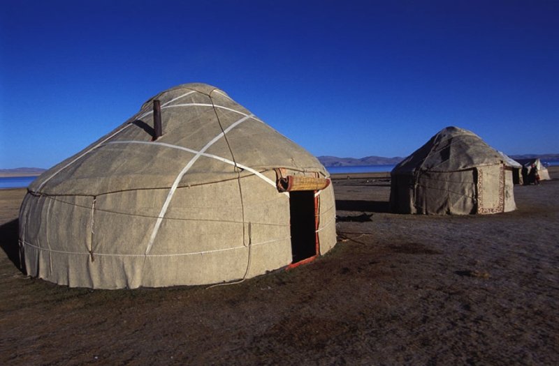 En Guest House ou petit hôtel, pour les nuits passées à Bishkek, sous tente (2 places) et yourtes si possibilité.