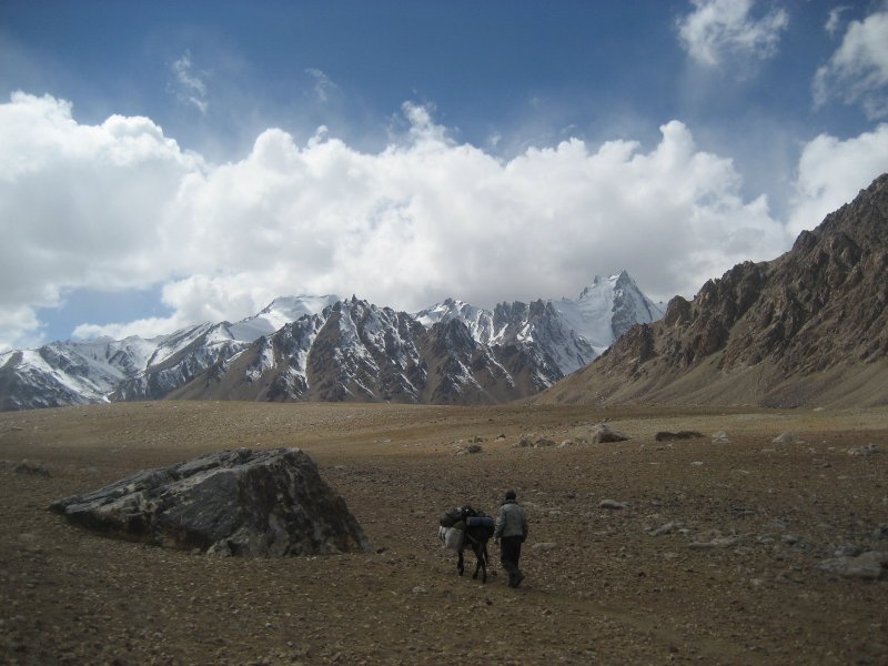 Deux journées de randonnée jusqu’au pieds de 2 magnifiques sommets les pics Karl Marx 6 723 m et Engels 6 507 mètres. Les puristes resteront impressionnés par ces 2 massifs de neige et de glace. Camp en altitude 3 900 mètres près d’une bergerie puis dans le village de Djawshandoz.Le plateau de Djawshandoz est plus austère, situé à 3 500 m d’altitude seules quelques battisses, troupeaux de yaks. Nuit dans une belle guest house pamiri à son architecture bien spécifique. Randonnée : 6 -7 heures de marche