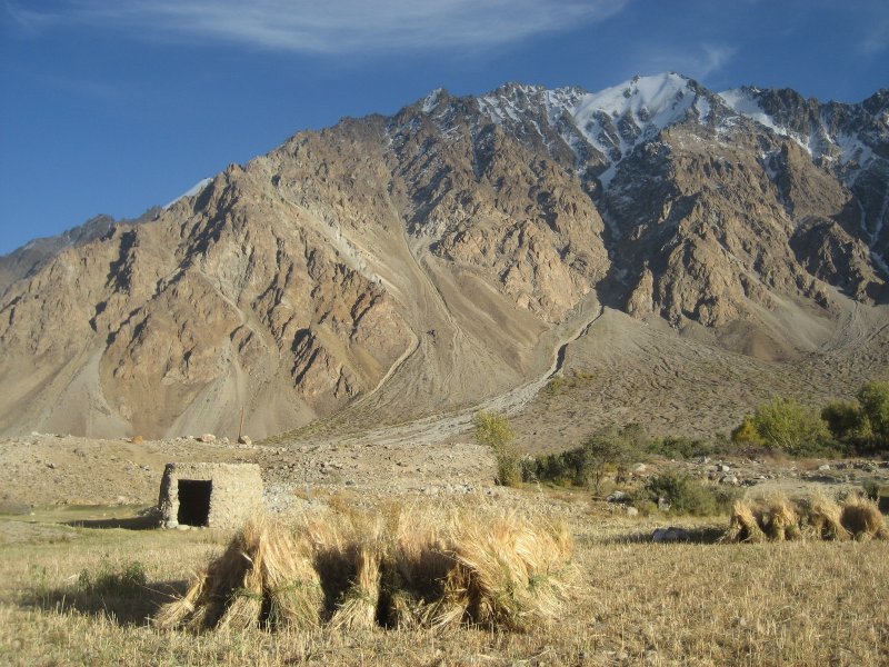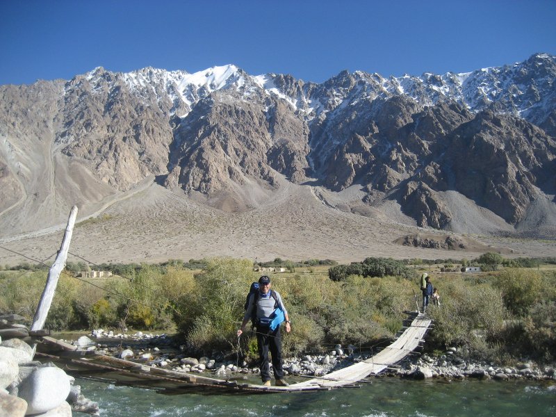 Quelques emplettes au bazar, et nous prenons la piste longeant la rivière Shakh couleur émeraude. Sur le parcours des villages pamiris construits au cœur de la vallée ou encore sur des pics rocheux. De petites oasis dans ce décor si minéral. Rencontres avec des familles pamiris, visite de leur accueillante demeure. Nous installerons notre camp près du village de Rubot. 4 heures de transfert