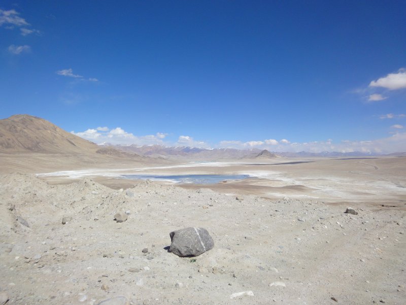 Journée de découverte de paysages « lunaires », Lacs de couleur turquoise, salés le long de notre piste et même un Geyser ! pour rejoindre le camp de yourte de Alichur en bordure de la Pamir Highway. Transfert avec des haltes dans de superbes sites.